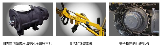 “開山”牌KT7型一體式露天潛孔鉆車是將潛孔鉆鑿系統(tǒng)和螺桿空氣壓縮系統(tǒng)融為一體的先進(jìn)鉆鑿設(shè)備,以一臺六缸柴油機(jī)為兩個系統(tǒng)提供動力,結(jié)構(gòu)緊湊,整體性好,移動方便。鉆車裝備的擁有核心知識產(chǎn)品的單級壓縮高風(fēng)壓螺桿機(jī)頭,應(yīng)用了國際先進(jìn)的湯氏Y形線,流動量大(13m3/min),氣壓高(1.7MPa),為高風(fēng)壓氣動沖擊器提供強勁動力,鑿巖速度比中風(fēng)壓鉆車高20%-50%。