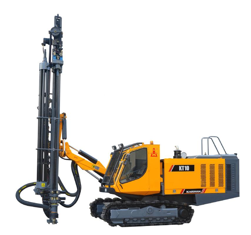 KT10型一體式潛孔鉆車以康明斯國(guó)三柴油機(jī)為單一動(dòng)力,通過(guò)兩端輸出的方式同時(shí)帶動(dòng)螺桿壓縮系統(tǒng)和液壓傳動(dòng)系統(tǒng),可鉆鑿φ90-125mm垂直、傾斜和水平孔,主要用于露天礦山和石方工程鉆鑿爆破孔和預(yù)裂孔等。鉆車配有自動(dòng)接卸桿系統(tǒng)和鉆桿潤(rùn)滑模塊,可實(shí)現(xiàn)單人操作,減少礦山作業(yè)人員。鉆車主操縱動(dòng)作集成在一個(gè)手柄上,操作簡(jiǎn)單,配有防卡鉆系統(tǒng),并可選配鉆孔角度和深度指示,簡(jiǎn)化了鉆孔過(guò)程控制并改善成孔質(zhì)量。高效的集塵系統(tǒng)、寬敞的駕駛室、大功率冷暖空調(diào)和優(yōu)良的音響設(shè)備提供了優(yōu)良的操作環(huán)境,大限度提高操作人員工作效率。